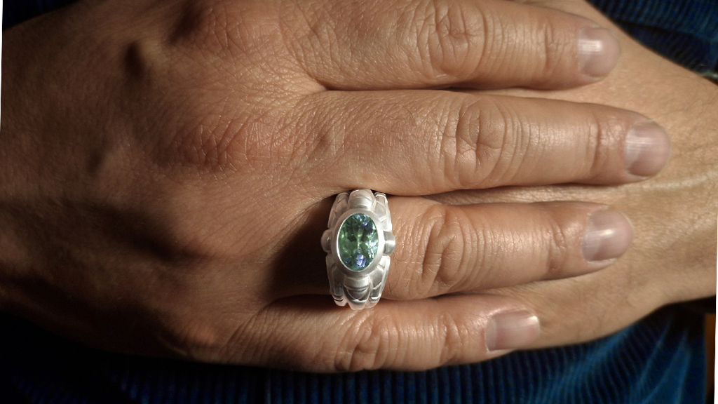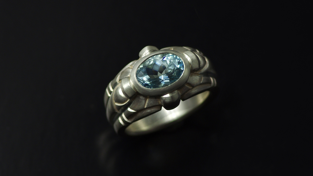 Ring in Silber mit einem Aquamarin 11 x 8 mm. Das Grundmodell ist mit vielen Edelsteinvarianten erhältlich.